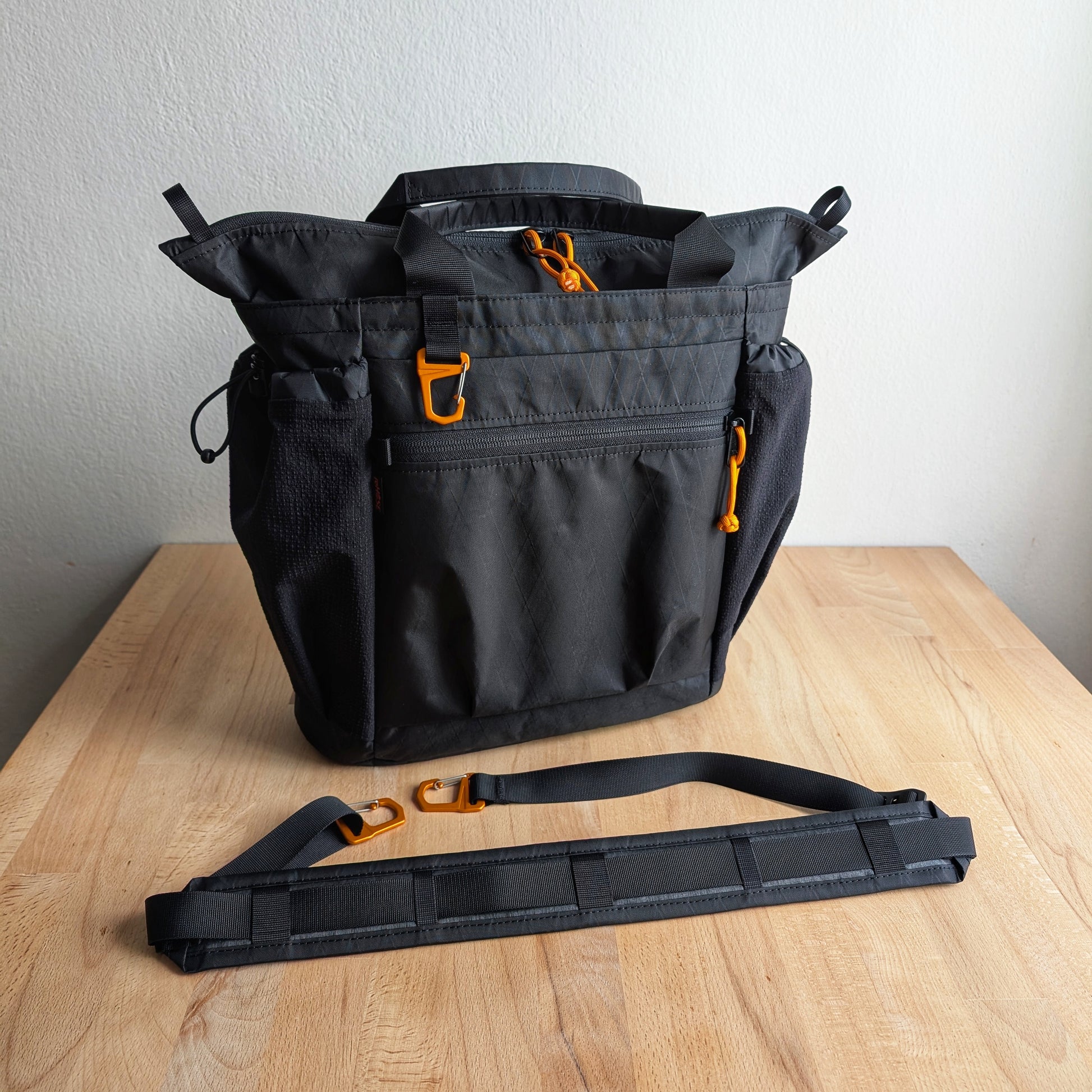 Crafted from premium, durable X-Pac laminate, this tote bag combines strength with a modern look. The newly designed trolley sleeve allows for easy attachment to your luggage, making it the perfect travel companion.